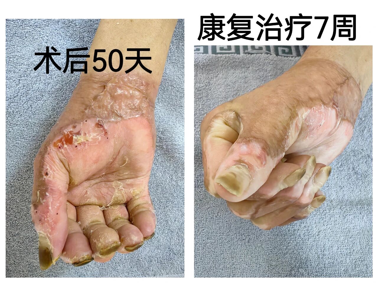 “医生教我每天用温水浸泡双手后做手掌抓握和手支撑床面训练,妻子帮忙记录角度变化。”董先生展示手机里的家庭康复视频。康复团队为其量身定制了包含瘢痕按摩手法、家居环境改造建议、营养支持方案的居家指南,并通过远程医疗平台每周跟进调整。